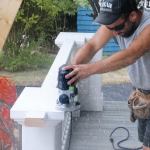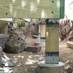 The final step in the framing was building short sections of “knee wall” – basically, low stud walls tied to the deck with metal connectors; later they’d be encased in the finished pedestals.
