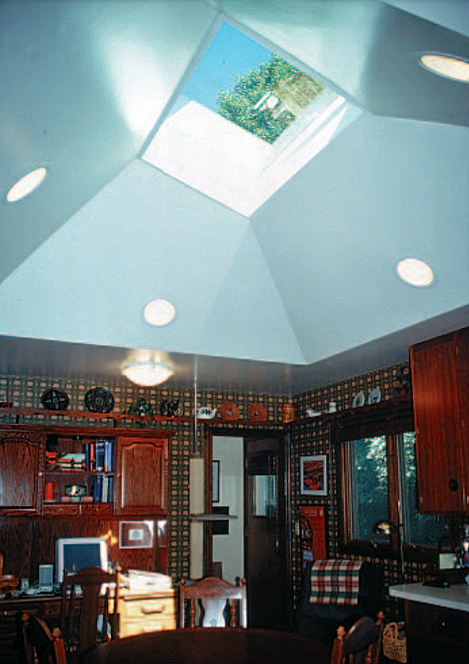 Figure 4. Recessed lights in the skylight well make it an important source of light and a visual focal point at night as well as during the day