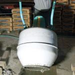 I fill the hole about a third of the way and tamp it with a shovel to remove air bubbles.