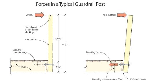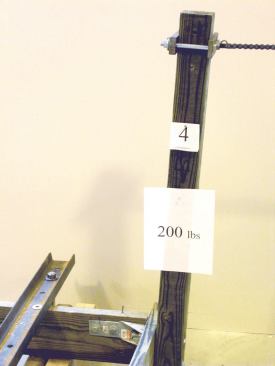 We tested five samples each of the bolted and lag-screwed post connections. What became obvious is that these standard details don’t come close to meeting the code load requirement.