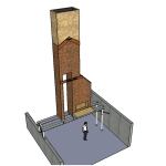 The obstacle to creating a new, larger media room and custom wine cellar was the massive base of a brick chimney. The chimney base needed to be removed, and our job was to support the upper portion of the chimney and flues–which were to remain–with steel beams.