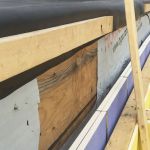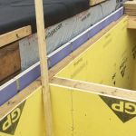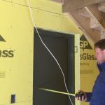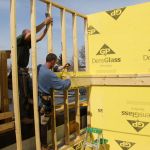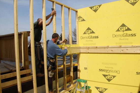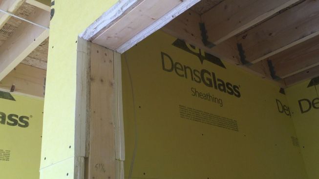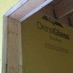 The yellow GP DensGlass gypsum board at right is protecting the …