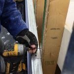 Paisley attaches the firewall frame to the wood wall of the new building with an aluminum clip.