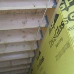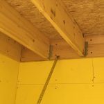 Another look at the specialized truss hangers, which allow wood floor framing to be isolated from wall framing by fire-resistant gypsum board.