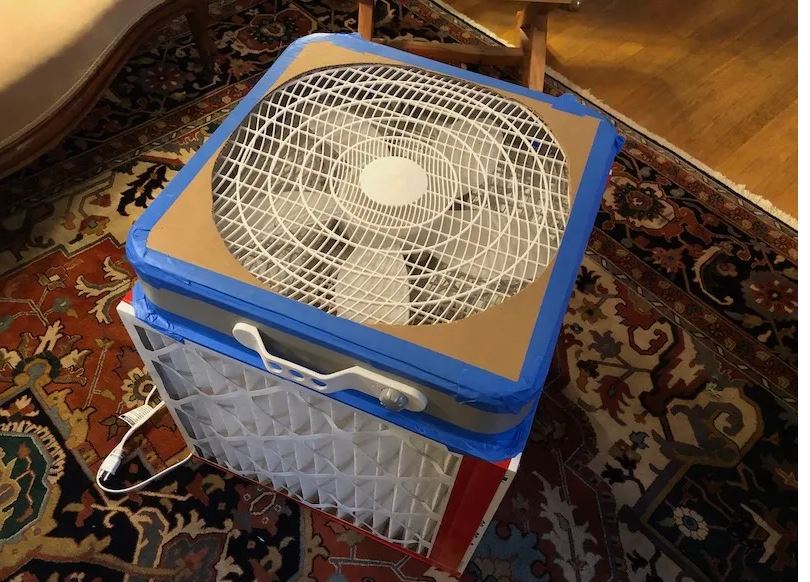 The rapid spread of the Omicron variant of COVID-19 has prompted Allison Bailes of Energy Vanguard to revisit the box fan air cleaner that he built (and wrote about) back in 2020. Assembled from four or five MERV-13 air filters taped together and mounted to a standard 20-inch household box fan, the so-called Comparetto cube provides whole-room air cleaning performance comparable to commercial HEPA air cleaners for minimal cost. In this update, Bailes describes how a simple shroud mounted to the box fan improves its performance.