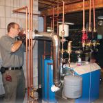 In moderate conditions, when the boiler doesn’t need to heat 6 or 7 gallons of water all the way up to 180°F to maintain the house at a comfortable temperature, the boiler may stop firing at only 130°F or 140°F. The Logamatic controller, as Buderus calls it, also manages the system’s new indirect domestic hot-water tank. If my clients ever decide to upgrade, the controller can integrate solar panels or radiant heating into the system, too.