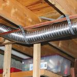 With that scenario in mind, we installed a combustion air system using a screened intake air hood from Field Controls (fieldcontrols.com) and 4-inch-diameter 30-gauge galvanized steel pipe. The pipe connects to a termination collar on the back of the boiler. Buderus has specific clearance guidelines for the wall termination, but the basic rule of thumb is not to place it facing the prevailing wind (though with vertical rather than sidewall venting, this isn’t as critical).