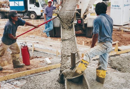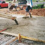 Day 2, Afternoon. The paving contractor pours the concrete, usually 4 to 5 inches thick, measured from the wire mesh. The heating contractor should be on hand to provide technical help during this crucial phase.