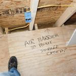 We also take time to apply targeted amounts of canned foam to penetrations even in areas that will later be insulated with spray foam, such as around the eaves. Our insulation sub ordinarily doesn’t spray these areas until after the siding is in place, so “prefoaming” any potential leaks to the outside prevents the spray foam from poking through the exterior finish.