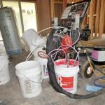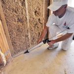 Our preferred wall system for new construction uses 2×6 walls with advanced framing insulated with Owens-Corning’s EnergyComplete blown-in fiberglass, which is designed to combine the air-sealing ability of foam with the low cost of fiberglass. The air-sealing component is provided by a fast-curing, flexible latex foam that can quickly be sprayed over the edges of ganged studs or double plates to form a thin, easily compressed layer that doesn’t interfere with the drywall. It’s also used to air-seal butt joints between sheets of plywood or OSB sheathing, or between framing and sheathing.