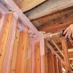 In remodeling projects, it’s not uncommon to find framing problems that allow unconditioned air to pour directly into the living space. These can usually be sealed off with some combination of plywood, sheet foam, and canned spray foam. After taking care of these trouble spots, we seal any middle-sized holes where pipes and wires pass through the framing. Our favorite material for this is a black-colored polyurethane foam called “koi foam” (used in our area for adhering ornamental stones to the liners of koi ponds). We like it because it doesn’t degrade from UV exposure.