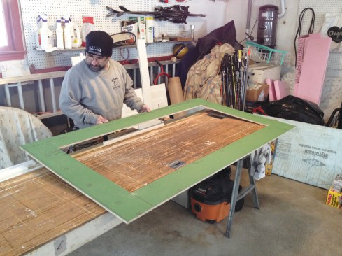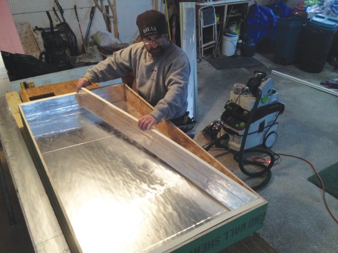 After I taped the foam top to the sides of the hatch-cover frame, I added the remaining foam strips to the inside of the cap, taping all of the seams with foil tape. Finally, I applied a 1 1/2-inch-wide gasket material (commonly used for weatherization projects) to the bottom edges of the cover.