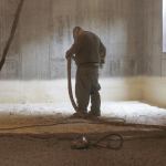 It’s safe to enter the area about an hour after spraying. We do insist that no other work be scheduled in the basement on the day of an SPF application, and we post all entrances, notifying workers that respiratory protection is required in the spray zone. And to avoid accidental ingestion of foam particles, we don’t allow any smoking, eating, or drinking anywhere near the area.