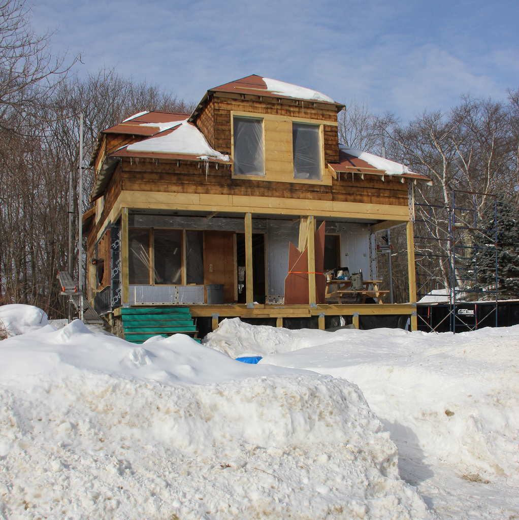 Winter has hammered Portland, Maine in recent weeks, and that includes Peaks Island, a 20-minute ferry ride from downtown in the Casco Bay. The weather has presented challenges, but it hasn’t stopped work on the project Coastal Connection has been following there: the foundation-to-ridge structural reinforcement and deep energy retrofit of a hundred-year-old island cottage (see Slideshow).