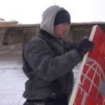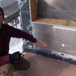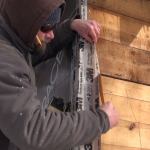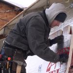 On the coldest days this month, Pollard said, the Weathermate tape was too cold to use. “We tried heating it up in front of the salamander heater,” he says, “but that melted it.” Finally, he said, he bought a plug-in therapeutic heating pad from the drugstore, and placed the heating pad with the rolls of tape inside an insulated foil “cold bag” from the grocery store. “That turned out to be perfect,” he says. The crew couldn’t wear gloves while handling the sticky tape, says Pollard. But he says, “We would keep our gloves in the heated bag, and when our hands got too cold we would stick them in there and warm up.”