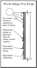 Wood siding over foam is another issue. There have been plenty of reported failures of wood siding installed over foam, but not much agreement over whether the cause was the non-absorbent foam or poor quality siding. The answer may be both.