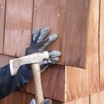 As we sort through shingles, we cull any hard and brittle ones that are likely to crack or warp after they’ve been installed. Some shingles have hidden vertical cracks along the grain that show up if the shingle is flexed parallel to grain. If a shingle cracks when we flex it, we don’t use it.