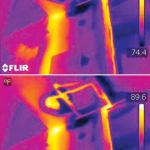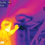 take a look. I found a patch of blistered paint on the return wall of the home’s main staircase (see slideshow). Moisture readings confirmed that the wallboard in the area was damp. A bathroom upstairs might have been the likely culprit, but the builder had already repaired leaky supply pipes a few months earlier, so now he suspected the roof. However, the initial IR scan showed a pattern of water under the bathtub, so we figured we’d start there.