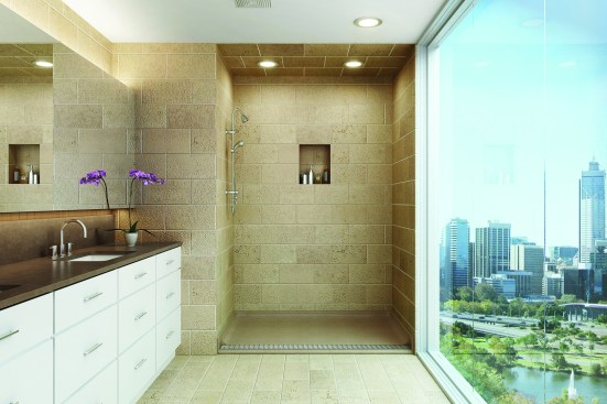 Barrier free showers. One of the most dangerous actions in the bathroom is to step over a tub or other obstacle. Designing your shower to be barrier free allows for safety and also adds a luxurious look.