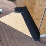 When we do a chase repair, we usually rebuild – or add – a water diverter, or cricket, at the top. We make the cricket wider than the chase by about 6 inches on each side. Extending the cricket past the corners helps divert water flowing down the roof away from the chase and also simplifies step-flashing installation.
