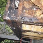 Framed chimney chases seem to be especially vulnerable, and I’ve repaired a lot of them over the years. For example, the house shown here was built just a few years before my crew and I began working on it, but already the paint was peeling from the fiber-cement clapboards, and the corner boards had begun to rot. When we dug a little deeper, we discovered deteriorated sheathing and rotted framing, too.