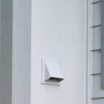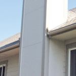 We replaced the existing plastic vent hood for the fireplace’s makeup air supply with a metal one, mounting it on a PVC block and cutting the siding panel around it. The block is sealed to the panel with sealant, but we left the joint between the bottom of the panels and the Z-flashing capping the trim at the chase base uncaulked, to allow any moisture that gets between the siding and the drainage plane to escape.