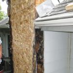 We found that most of the damage had been caused by water from the roof running behind the siding and down the sheathing – the result of some missing step flashings. Adding to the problem, the chase’s OSB sheathing hadn’t been covered with a water-resistive barrier. In an attempt to save a few hundred dollars, some builders omit housewrap over garages, chases, and gables in the mistaken belief that it’s not required by code over unheated wall assemblies. In this case, a few extra flashings and some housewrap could have prevented thousands of dollars in damage.