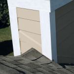 For chimney chases built into gable walls, we install a partial diverter, again extending the sloped surface several inches beyond the corner.