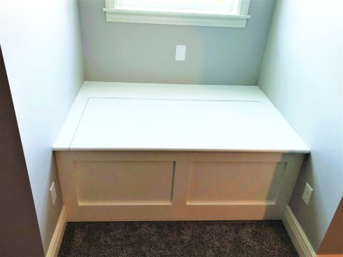 Recently, one of my customers hired me to add a doghouse dormer to the back of their house to create space in their children’s bedroom. After framing and drywalling the new dormer, I suggested adding a window seat. With a piano-hinged lid, the window seat would be a great toy box. At my clients’ suggestion, we sized the toy box to be 36 inches deep. Their plan was to add cushions on top so that it would double as a napping spot for the kids.