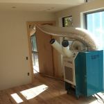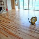 Here’s the background on this project. It’s a remodeled 1960’s house with Architecture by Webber + Studio Architects here in Austin, TX. This is a solid 3/4″ Pecan floor nailed to 3/4″ plywood over a vapor barrier on a concrete slab. We laid the floor with raw wood then sanded just the edges of the floor where base molding would hit the floor (in order to eliminate shoe molding we install floors THEN base).