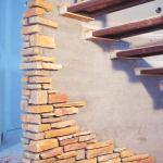 The completed stair is very stiff. One day I walked onto the job and found that the masons had set part of their staging on the outer edges of two treads near the center of the span. It was quite a shock to see two burly masons and hundreds of pounds of stone, staging, and mud creating a point load at one of the weakest parts of the stair. My concern was short-lived, though: A quick check with a level showed that the load had caused less than 1/16 inch of deflection.