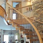 The remaining work involved installing the newels, rails, and balcony trim. Some of the components were curved and all were prefinished, but otherwise this part of the job was typical stair-building.