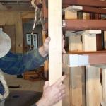 The template would have to make a number of trips between the shop and the site, so I marked the exact location of the screws securing it to the floor, then used the same screw holes every time I refastened it. In addition to the template, I made a story pole showing the vertical distance between the first floor, the raised foyer floor, and the top and bottom of the second floor.
