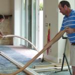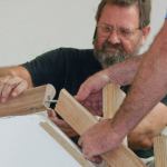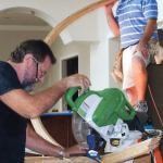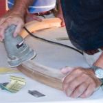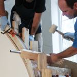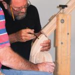 Cleanup. Once the rails were clamped, I tried to clean up as much of the glue squeeze-out as possible. To minimize springback, I waited 72 hours before removing each bent handrail section from its form. After pulling off the plastic wrap and bending mold, I removed dried glue with a card scraper and smoothed the bottom of the rail with a random orbit sander. I used a set of Tadpole profile sanding grips to clean up the rail’s beads and hollows.