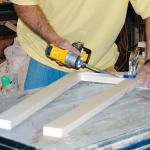 I glued the four frames together, pinning them to each other with my 23-gauge headless nailer to hold the assembly in place while I set up my clamps.