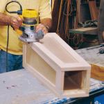 Setting the two wider frames slightly proud of the two narrower frames made it easier to flush-trim the joints with a router after the glue dried; this resulted in better-looking joints. I cleaned up the 26-inch-high assembly with a random-orbit sander and 120-grit paper.