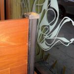 The restaurant’s interior features a lot of bare steel, and for the room dividers the owner envisioned something simple and streamlined yet strong enough to meet code requirements. We chose a straightforward design: 5/4-by-6-inch ipe decking boards stacked between two steel posts to create thin, elegant dividing walls.