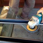 I welded a small steel plate and a 1/2-inch nut to the bottom of each post for attachment and used a flap wheel and an angle grinder to remove burrs from the edges of the ripped channels. I also smoothed over the welds on the bottom ends of the posts to ensure that they didn’t stick out past the edge of the tubes.