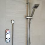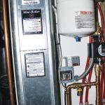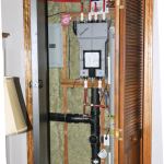 The bathroom shower has multiple showerheads controlled by a remote Moen multi-outlet shower valve. To meet the added demand for hot water, we installed an additional 50-gallon water heater connected in series to the home’s original hot-water tank. Since the bathroom is heated hydronically, while the rest of the house is heated with a furnace, we also installed a small Electro EMB-2 2.5 kw electric boiler (electromn.com). We found room for the new mechanical equipment in a spare bedroom closet located in the basement.