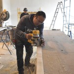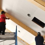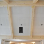 On the ceiling, 2×6 blocking is installed to the backing with cl…