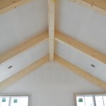 Vaulted ceilings are requested by clients in about a third of the homes I build. Even in contemporary homes, the plans often call for exposed beams. Almost always, the design has a main beam at the ridge with partial beams running up the end walls and a pair of full beams dividing the ceiling into thirds. The rake beams running up the ceiling are usually less than 16 feet long, which makes it easier to find full-length finish material for them. We make those beams 11 1/4 inches deep by 7 inches wide and like to make the partial beams at the wall 5 1/2 to 6 inches wide. Although they don’t carry any load, the beams should look like timber framing, so getting the proportions right is important. To that end, we make the main beam at the ridge a couple of inches deeper than the rake beams.