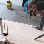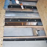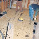 We reinforced the rest of the joists with C5x9 steel channel attached with 1/2-inch-diameter bolts spaced 12 inches on-center. These C-shaped channels are sized a little narrower than the existing 2×10 floor joists, so maneuvering them into position was easier than working with sistered wood joists; also, they’re more effective at limiting deflection.To further strengthen the floor, we replaced the existing subfloor with 3/4-inch AdvanTech T&G sheathing, followed by a layer of 1/2-inch plywood installed with full-spread Titebond wood glue. We fastened the second layer of sheathing to the first with 1 1/4-inch-long Grabber subfloor screws (800/477-8876, grabberman.com) spaced 8 inches apart; these fasteners are far more effective than drywall screws at drawing the layers together.