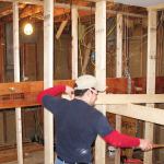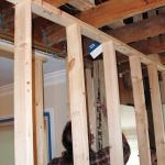 Working from the engineer’s stamped drawing, we assembled a flitch beam using two 1 3/4-inch-by-9 1/2-inch LVLs sandwiched around a length of 1/2-inch-by-9-inch steel. We built temporary shoring walls in the basement, kitchen, dining room, and attic to hold up the ceiling and roof while we removed the bearing wall and cut back the ceiling joists. We hoisted the 400-pound beam into position with the help of a pair of come-alongs rigged up in the attic. Each end of the flitch beam bears on a new Parallam PSL column.