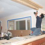 The kitchen designer originally wanted us to simply replace the bearing wall with a dropped beam that would be partly buried in an upper peninsula cabinet. But cabinetmaker Joe Zabkar suggested we install a flush beam instead to simplify cabinet construction and create a stronger visual connection between the kitchen and dining area. That would entail considerably more work but would result in a much better-looking kitchen.