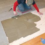 Backerboard. To prepare the floor for the heat mat and tile, we screwed 1/4-inch cement backerboard to the plywood, first bedding it in thinset mortar. We did this because we were planning to use a self-leveling underlayment (SLU) in conjunction with the heat mat. Usually, expanded metal lath is required when an SLU is poured over a wood subfloor (see “Working With Self-Leveling Underlayments,” 4/11). However, according to Laticrete – manufacturer of the self-leveling compound, thinset, heat mat, and grout we used on this project – a heat mat is an acceptable alternative to metal lath. Expanded metal lath can’t be used with a heat mat, of course, but in its absence we felt that the backerboard would provide a more stable substrate for the SLU than plywood alone.