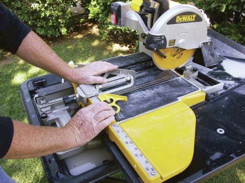 Before every major project, I check the wet saw to make sure it’s set up properly. With all the handling the tool gets — like bouncing around in my truck on the way to and from a job — it’s easy for things to get out of alignment. A quick check ensures that the tool is cutting perfectly.