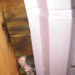 Vent chutes were installed in the rafter bays, but solid blocking between the rafters along the top of the exterior wall prevented any ventilation air from circulating. There were no intake vents along the eaves and there was no ridge vent at the roof peak.