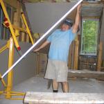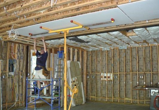 The hardest boards to install when you’re working alone are the ones on the ceiling and the upper horizontal course on the walls. To make the job easier, I own a Telpro Panel lift (800/448-0822, telproinc.com). Though there are now several imported Telpro knockoffs that can be had for less money, I’ve used my lift for over a decade and consider it the best drywall lift on the market.