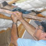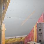 Inclined ceilings. When I’m installing sloped ceilings, the hooks that hold the panel on the panel lift are a nuisance because they project into the insulation. For those jobs I prefer to support the panels with simple site-built brackets, even when I’m working with a helper. And when I’m alone, these brackets take the strain out of aligning the boards at the ceiling-wall junction, which can be particularly hard to do when you have to push them against bulging insulation.