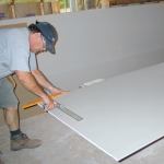 I’ve been working in the building trades for over 30 years, so I’ve learned to avoid lifting full sheets or large pieces directly off the floor whenever possible. On most jobs, a large proportion of the drywall has to be cut to length, which I do immediately, right on the stack where it’s been stocked. This makes the boards lighter, substantially reducing the amount of weight I end up moving and lifting over the course of a day.
